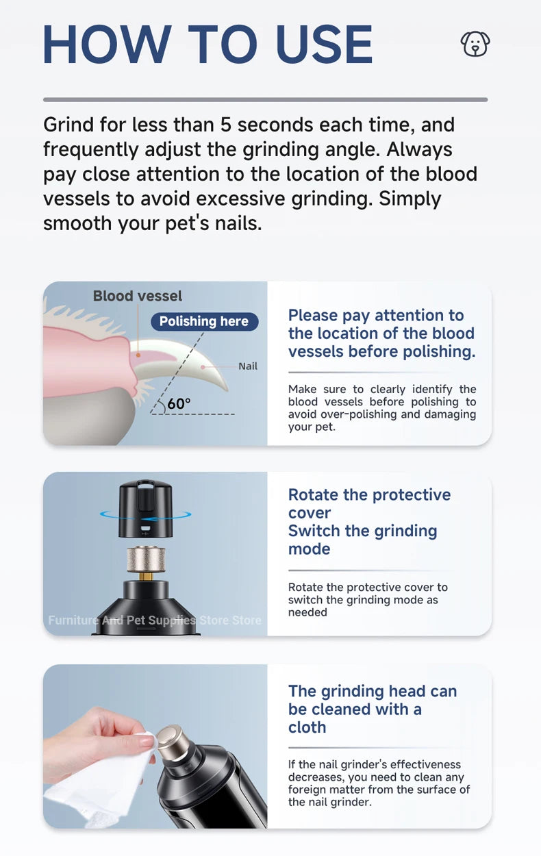 Electric dog nail grinder dog nail trimmer pet nail trimmer cat nail grinder with polishing wheel suitable for small/large pets