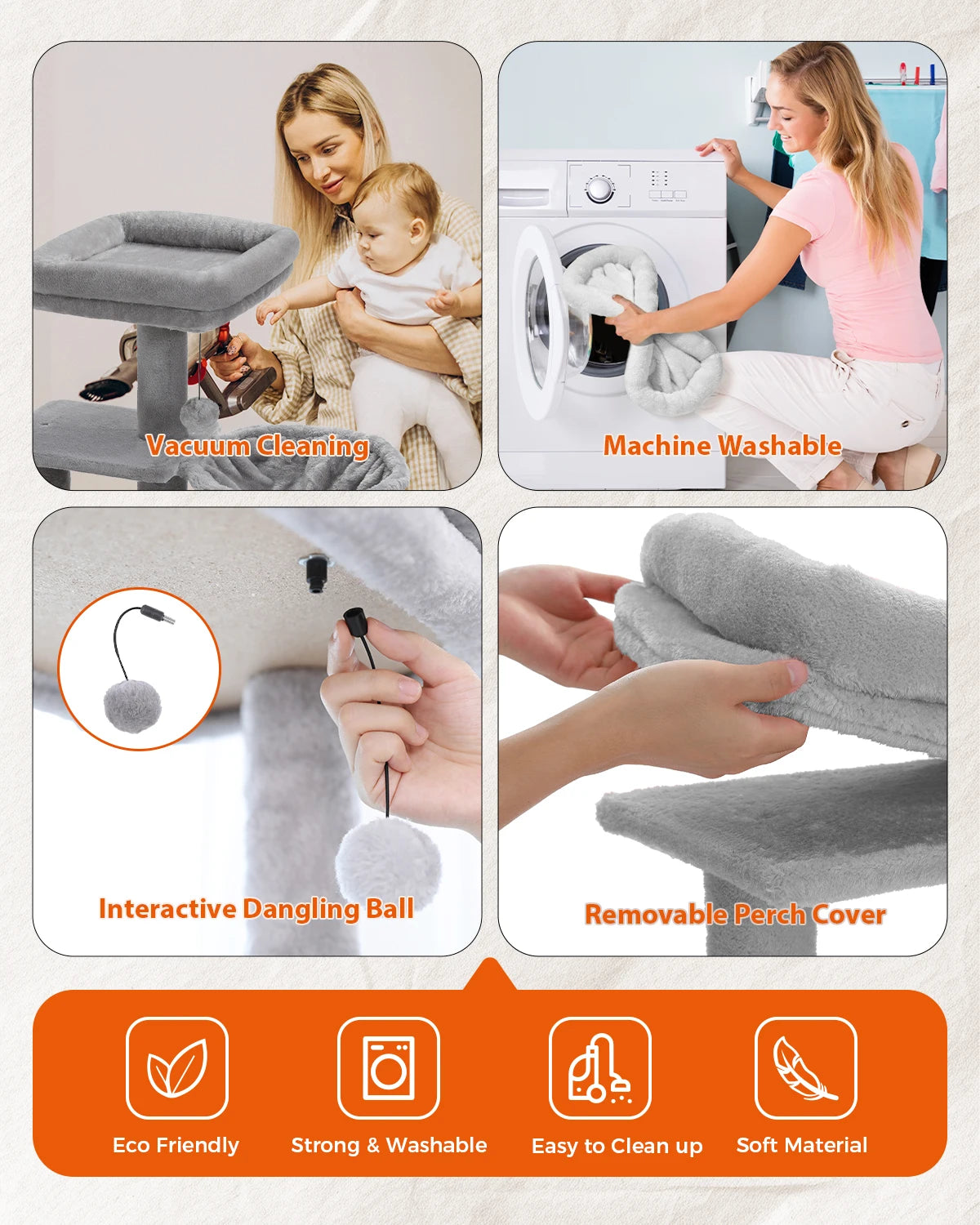 4.Reliable support - With direct instructions and tools, this cat tree is easy to assemble. Besides, we offer friendly and warm customer service with quality assurance before and 1 year after purchase. If you wish, please feel free to contact us problems with our product.