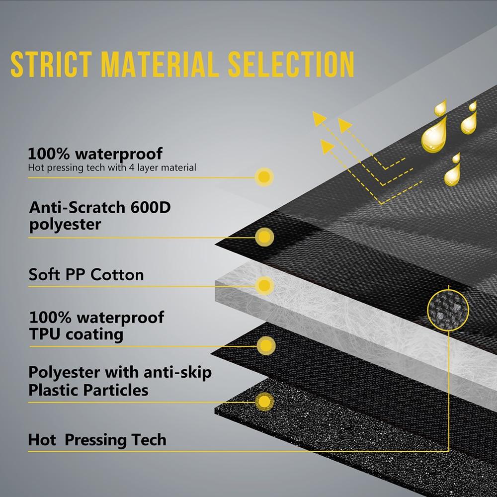 Durable and 100% Waterproof Materials - It is made by 600D oxford with TPU coating, and using hot pressing technology to seal it, no stitching is needed and its 100% waterproof and very easy to clean.
